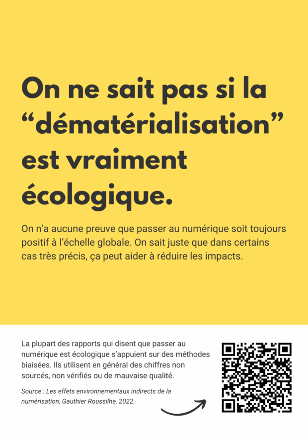 On n’a aucune preuve que passer au numérique soit toujours positif à l’échelle globale. On sait juste que dans certains cas très précis, ça peut aider à réduire les impacts.